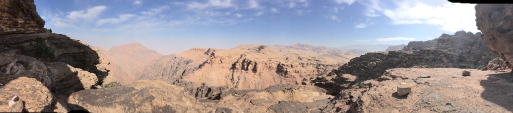 Nos dejó allí en medio de la nada, caminando por una cumbre de roca y un desfiladero por la montaña. Después de media hora de caminar … y con dudas de si nos habíamos perdido, un beduino nos dijo que íbamos bien… Seguimos caminando hasta encontrarnos otros beduinos que estaban poniendo escalones en la piedra…. Y pasada la hora , tras vistas panorámicas y risas nerviosas …. llegamos al Monasterio. El camino con las vistas y sin nadie a tu alrededor…. valió la pena.